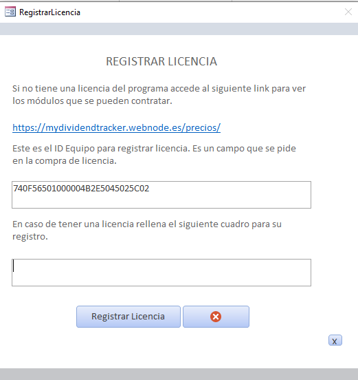 Debe ir a la página web para poder adquirir una licencia. Necesitara el dato que aparece en ID Equipo para realizar el registro.