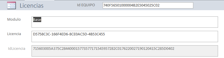 Aquí se configuran las licencias del sistema. Esta tabla se rellena de forma automática al registrar cada licencia.